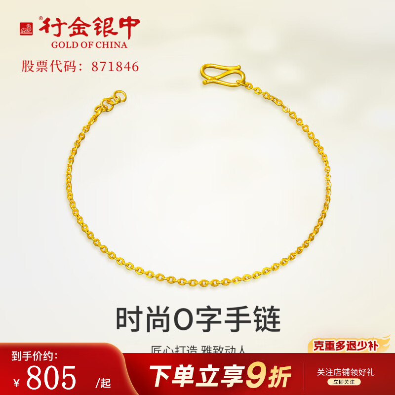 包邮 行金银中黄金手链女足金999经典o字手链素链纯金手饰送女友时尚生日礼物 O字手链 约0.75g 克重多退少补